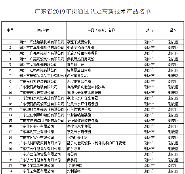【高品名單】關(guān)于公示廣東省2019年擬通過認(rèn)定高新技術(shù)產(chǎn)品名單的通知